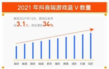 比起让三方账号传声,近两年游戏厂商越来越倾向于直接入驻抖音,缩短与玩家互动的链路。《白皮书》显示,截至2021年底,抖音游戏蓝V(厂商号)入驻账号数达3.1万,同比增长34%。