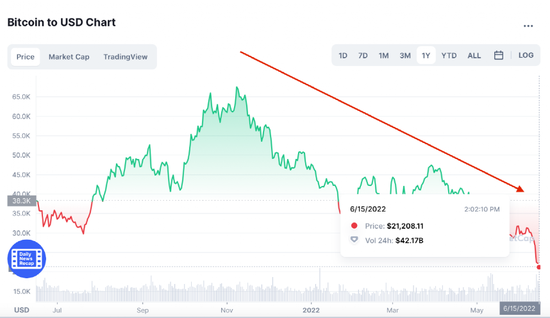 本周一(6月13日),虚拟货币市场“大血洗”,比特币和以太坊的单日下行震幅均超过15%。