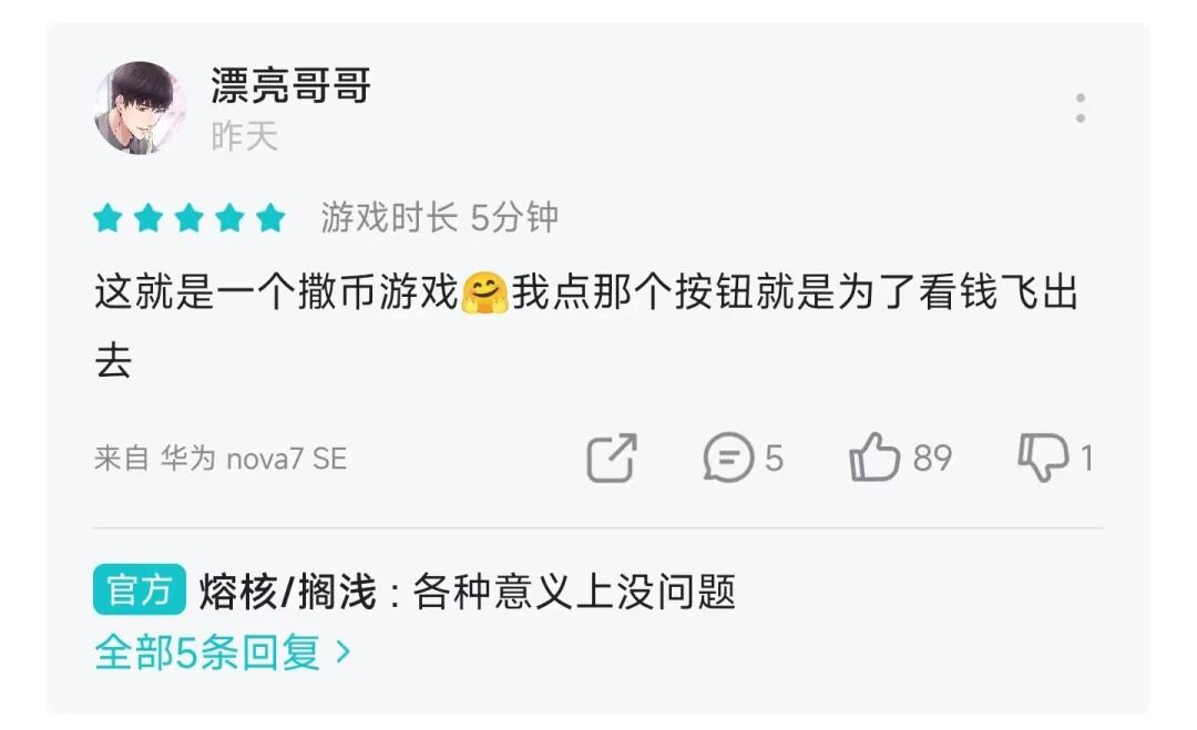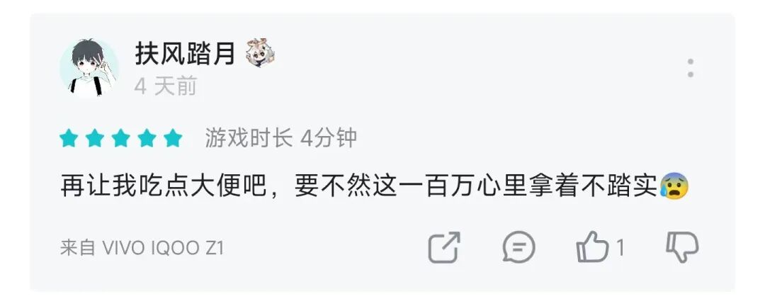 甚至有的玩家觉得代价太小,这钱拿得不踏实: