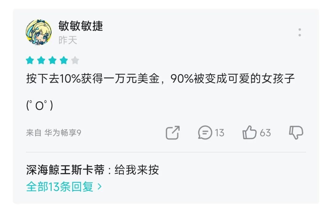 这周 TapTap 上有一款热门游戏就把这个不存在的按钮真的做出来了,游戏的名字也很直白,就叫“如果有一个按钮”。