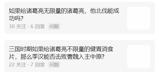 不过游戏做得还是太简陋了,只有简单的数值叠加这一种玩法,很多知乎经典问题都没法实现,比如诸葛亮系列: