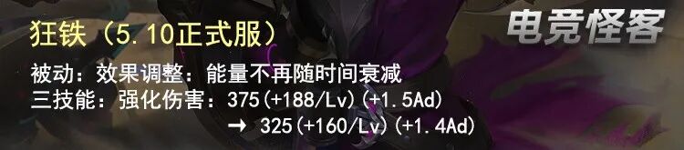 这是一个被大家忽略的对抗路,其实在上个月这一次更新中, 被动的能量不在随着时间而衰减 可以说是一个很高的加强了。