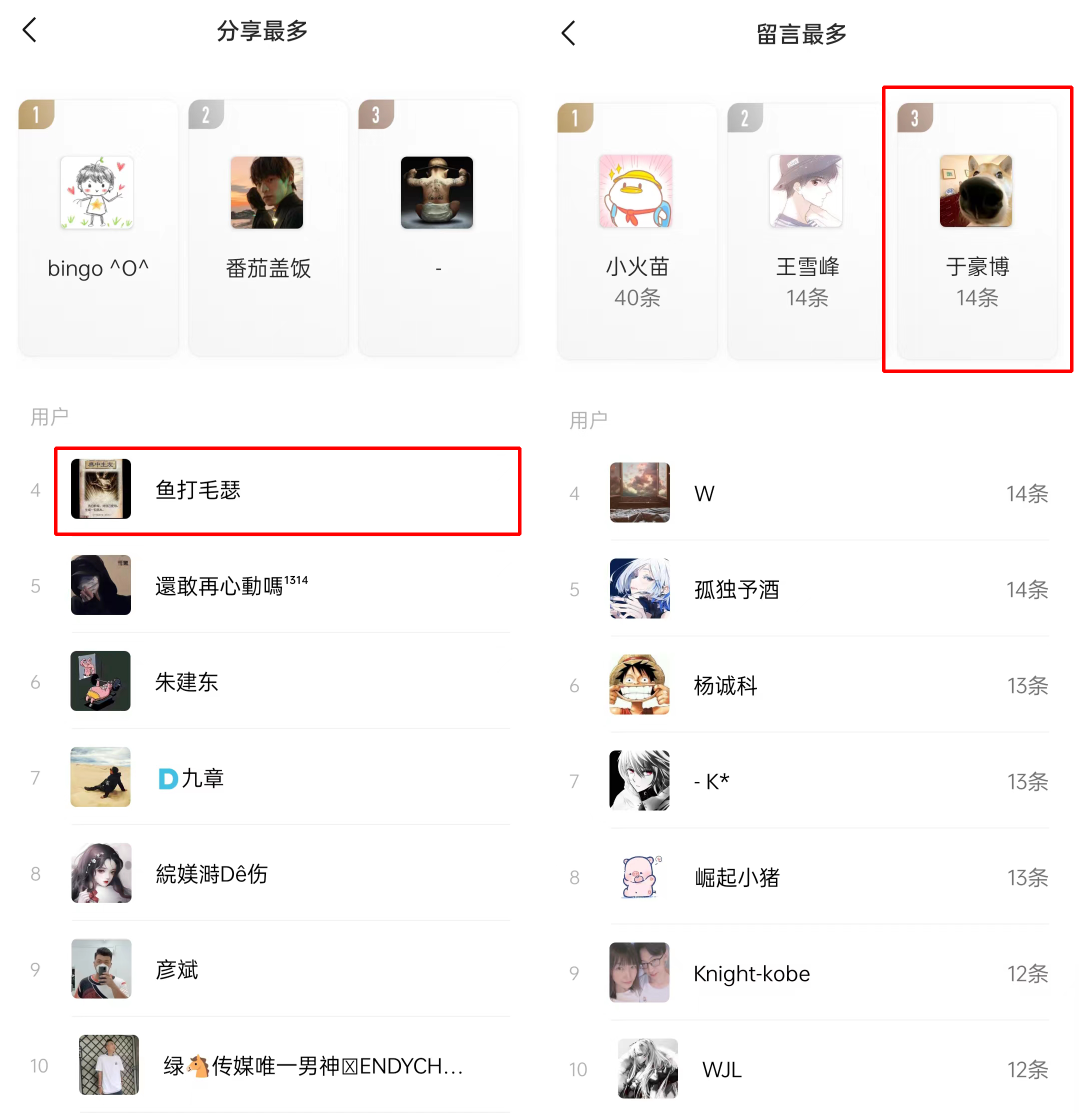 那么最后公布一下本周的排行榜幸运儿~