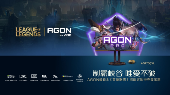 AG275QXL除2K高清、170Hz刷新、快速液晶1Ms灰阶响应时间,以及搭载G-SYNC和Adaptive SYNC技术等强悍性能为玩家提供畅快迅猛的游戏体验外,其从内至外的正统《英雄联盟》元素应用,打造出玩家最熟悉的峡谷氛围感;显示器启动/关机《英雄联盟》专属音,开机时便已踏入沉浸领域;《英雄联盟》专属人机控制器,一键切换快速进入游戏状态;《英雄联盟》LIGHT FX SYNC互动灯,游戏动作事件与电竞氛围灯即时互动,亲临峡谷战场,深度沉浸游戏世界;《英雄联盟》专属OSD菜单,爱攻电竞&拳头游戏联合调校英雄联盟游戏模式。全方位的为玩家们带来由专业电竞显示科技赋能后的全新魔法“视界”,竞力暴增一往无前!