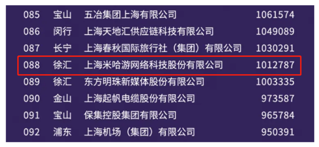2021年,米哈游凭借超100亿元营收,名列上海百强企业第88名。