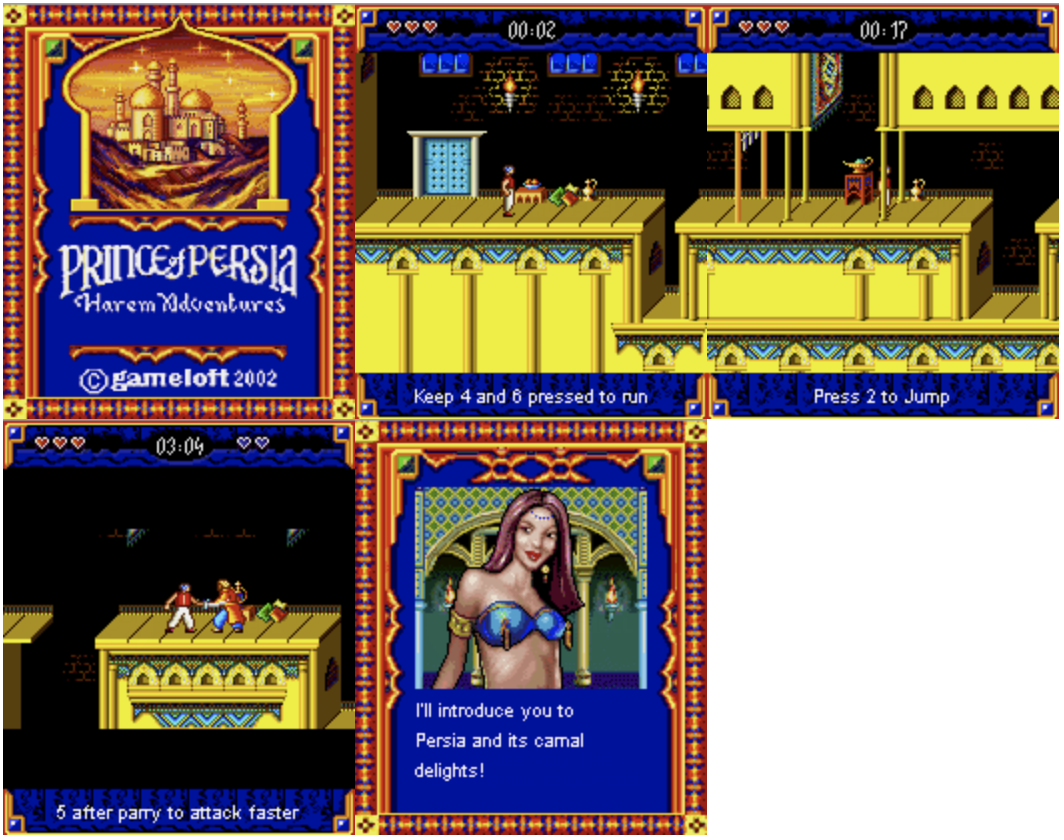 在当时有能力做出这种水准手游的公司并不多,于是他们接到了一个“大活”,为《波斯王子》开发系列第一款手机游戏。Gameloft的第一款大作《Harem Adventures》就这样在2002年发售,不过当时支持Java游戏的手机实在是太少了,所以就算是有《波斯王子》这块金字招牌,这款游戏也并没有获得太多关注。