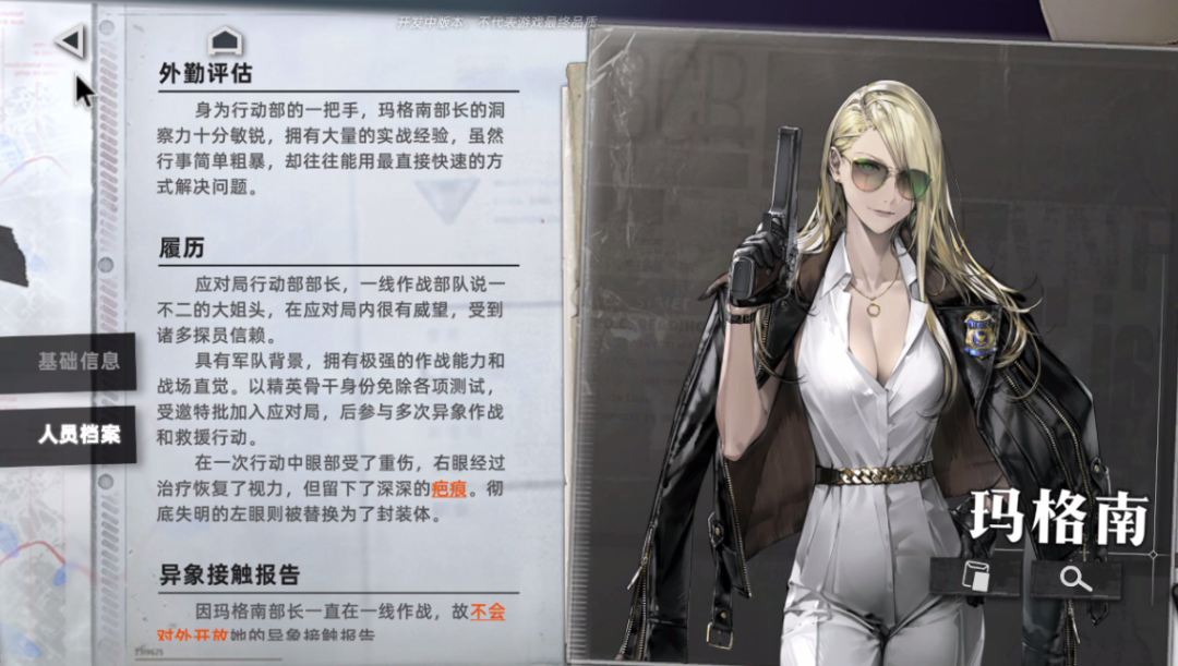 悬疑剧情需要有的探索机制 ,这是因为游戏的推理悬疑的叙事风格影响的需要;故事发生于近代/现代,虽然以超自然现象为主要的表达,但不以超人主角的风格来表达,不然超自然现象的那种不对等压迫感所带来的恐怖与悬疑感就无从谈起,那也就不是新怪谈,而变成了热心战斗。于是,时代性要求战斗形式尽可以以 近现代机械战斗 的方式为主,其次,不以超人主角为前提,那么,探案组织的主要角色就要突 出凡人化 的取向。