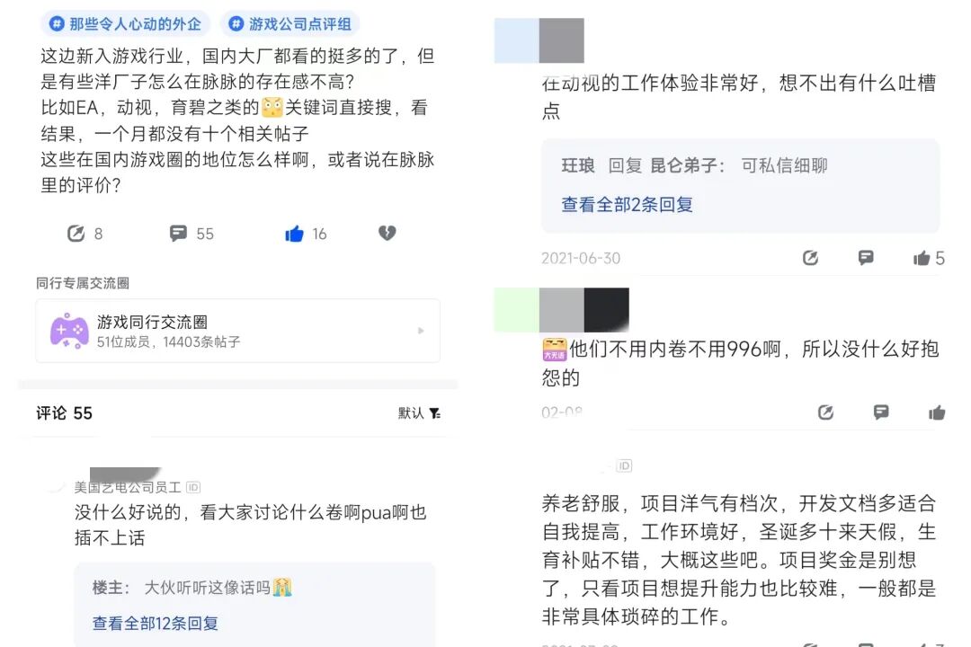 随着最近风口的转变,在脉脉上,不少HR和猎头也在趁机挖人,翻了翻评论区,我们发现除了国内游戏大厂,一些头部的海外公司也颇受跳槽者的欢迎,比如育碧、Garena、EA、动视、微软等。