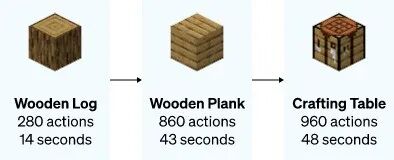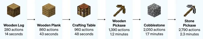 制作一把钻石鹤嘴锄需要一长串复杂的子任务。为了使这个任务易于处理,该研究会奖励序列中的每一项智能体。