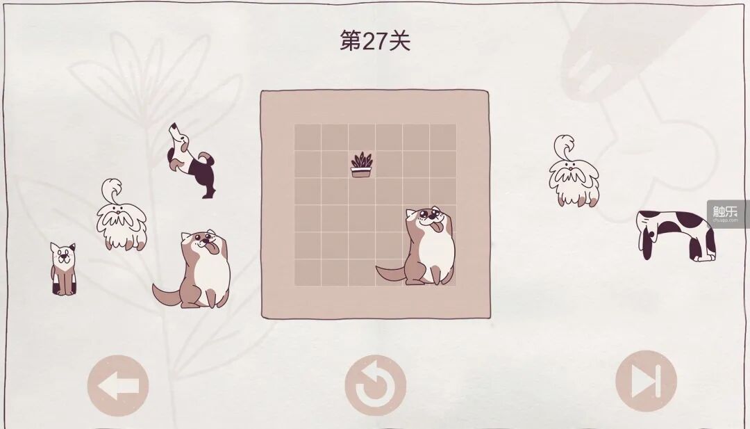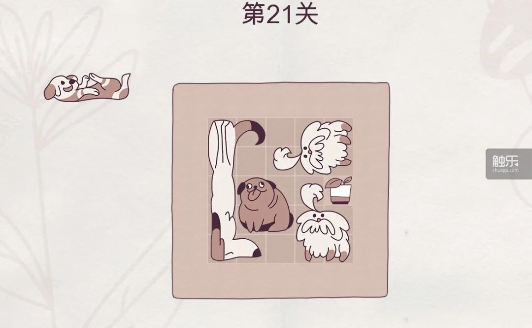 当然,我必须承认,这款游戏玩起来并不像看起来那么轻松愉快。游戏总共有80关,前20关大抵还算得上是相对轻松愉快,随着狗狗们的形状愈发奇妙,游戏难度也开始渐渐攀升。狗狗们翘起的尾巴、头上的呆毛都逐渐开始变得碍手碍脚,而偶尔出现的盆栽与花瓶也让人烦恼。好在游戏提供了跳过关卡功能,某种意义上减轻了一些解谜带来的压力。