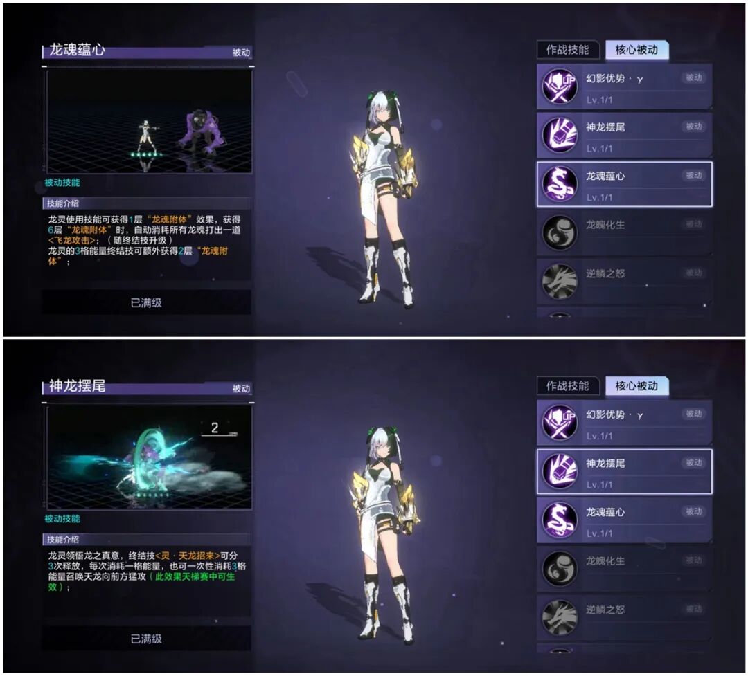举个例子,每个角色都享受“连招-终结-追击”这样三段式的爆发输出策略,而龙灵这个职业,还额外享有一招由六式蓄力的“龙魂蕴心”,当释放技能时可蓄积一个能量槽,蓄满后消耗所有能量打出特殊招式,并且该能量槽还会给终结技附加变招。