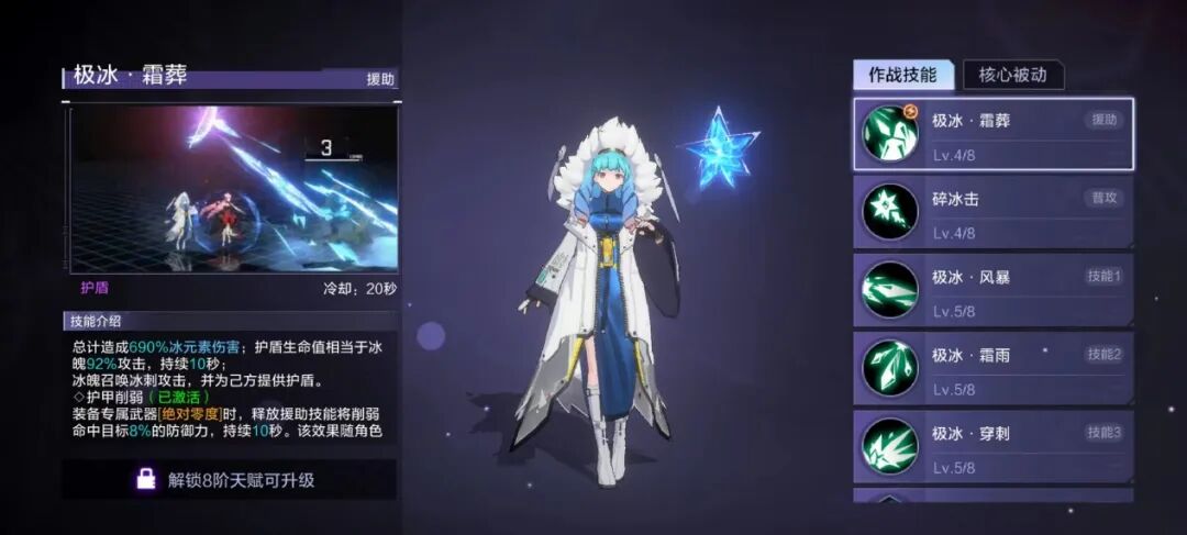 另外每场作战的四人小队,除了主战角色之外,其它三个角色在后台支援,而支援技通常具有“输出+特技”两种功能,譬如冰魄职业的支援技能,不仅可以给队友加护盾,还能造成冰属性的范围攻击,而审判这一角色虽然是强袭属性,其核心特色却是通过一个强控的聚怪技能支援队友。