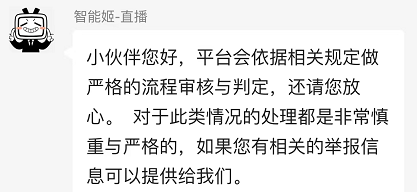 而如果选择继续询问“如何保护主播权益”,客服则会自动回复: