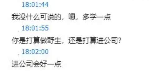 为蝶太打钱的这位“老板”声称自己是一名程序员,掌握着一个11人的独立工作室,经济实力雄厚,无需蝶太担心。而面对即将毕业的蝶太的求职咨询,这位“程序员”甚至还给出了一段模棱两可的回复解决蝶太的烦恼。