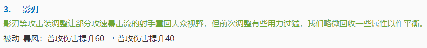这次调整后, 鲁班七号的扫射可以享受25%的精准效果, 提高了鲁班七号前期出影刃之后的伤害。毕竟这版本是呆射版本,没鲁班七号怎么行。