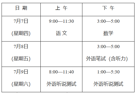 2022年上海市普通高等学校招生统一文化考试(以下简称“高考”)将于7月7日至9日举行,具体时间、科目安排。