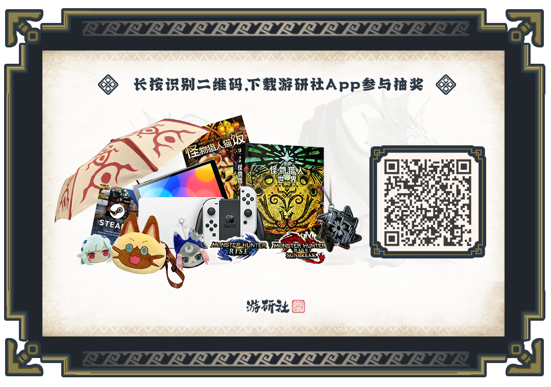我们在游研社App内上架了一台NS OLED、200份Steam充值卡、《怪物猎人:崛起》本体/DLC自选、怪物猎人周边奖品等等,连抽10天。 狩猎归来的猎人们,请前往油盐奖池抽取更多属于你的战利品吧!