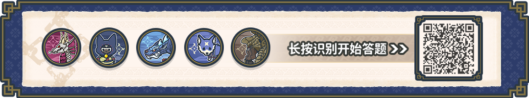 欢迎大家 长按识别下方二维码开始答题 ,通关挑战,测一测你的专属猎人称号,邀请好友共同瓜分Steam充值卡、怪猎周边等近千份好礼!准备好接受挑战了吗?