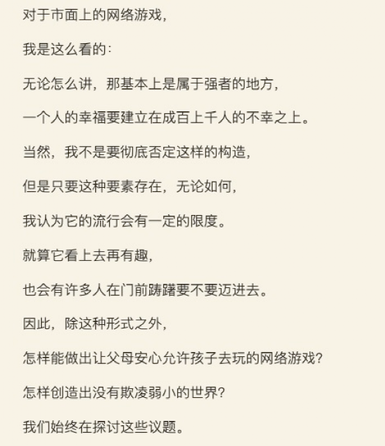 还有一小部分开发者,则更加“理想化”。 他们宁愿勒紧裤腰带紧巴巴地过日子,甚至愿意跟着团队一两年不发工资,也希望实现自己的梦想 ,去打造一款优质的作品,去成为国产游戏发展的一块基石。
