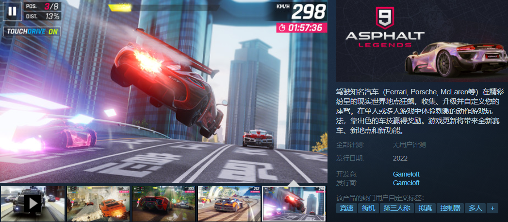 Gameloft 的 赛车 游戏《狂野飙车 9》上架Steam商城,将于 2022 年内免费上线,支持简中。 该作 此前 曾移植到Switch(2019.10.9)和Xbox平台(2021.9.2)。