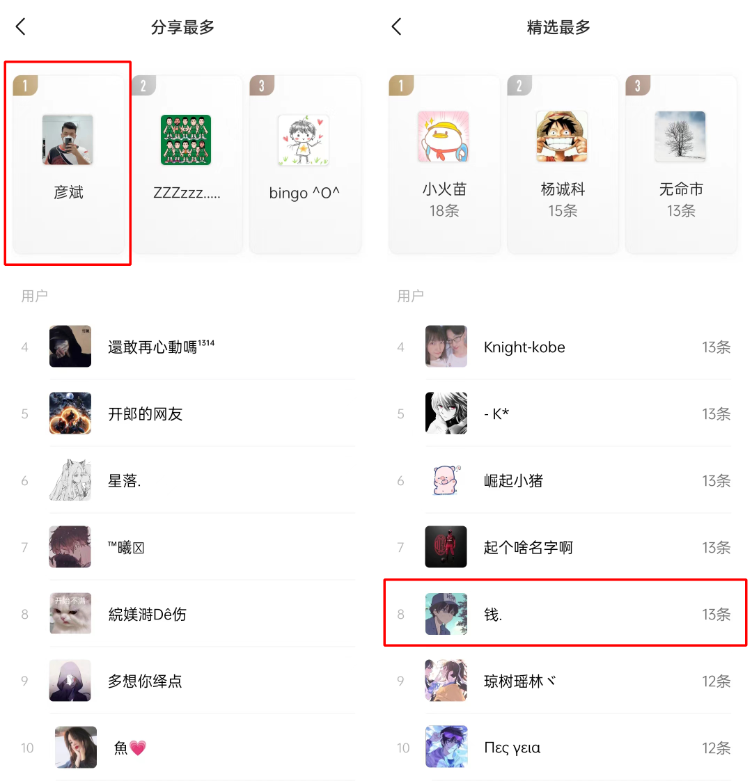 那么最后公布一下本周的排行榜幸运儿~