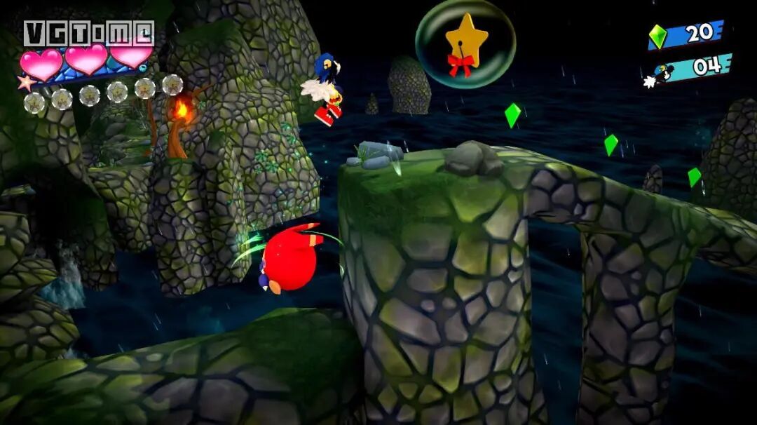 续作在关卡当中,还加入了能够让克洛诺亚在多个平台间转移的大炮。在部分桥段里,还有强制推进的环节,此时往往都是踩在滑步或是朝着巨大斜坡往下冲的场景。