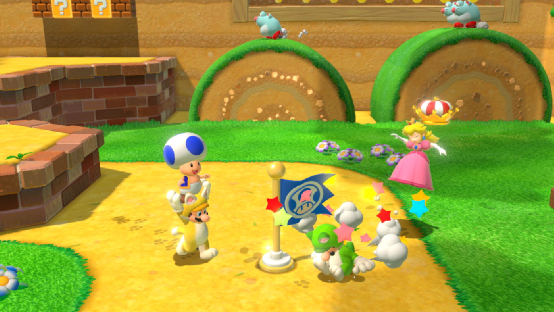 《超级马力欧3D世界》的设计秉承了“游戏好玩最重要”的理念,并将经典的2D马力欧风格,和现代的3D技术完美融合, 在横轴保持神秘与惊喜的同时 ,又让马力欧在 纵轴上获得了更多的可探索维度 创造了一套独具魅力的关卡。