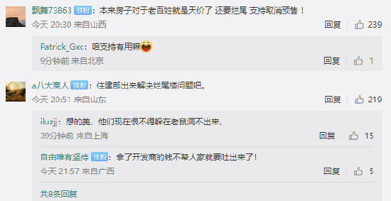 有网友表示:“我赞成取消预售制,不应把风险转嫁给购房者!”、“本来房子对于老百姓就是天价了 还要烂尾 支持取消预售 !”
