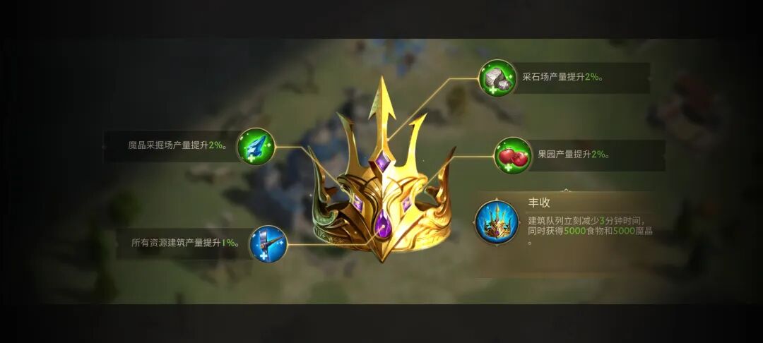 首先,游戏将资源分为了“粮食”“木材”“石头”,以及“水晶”四大类。