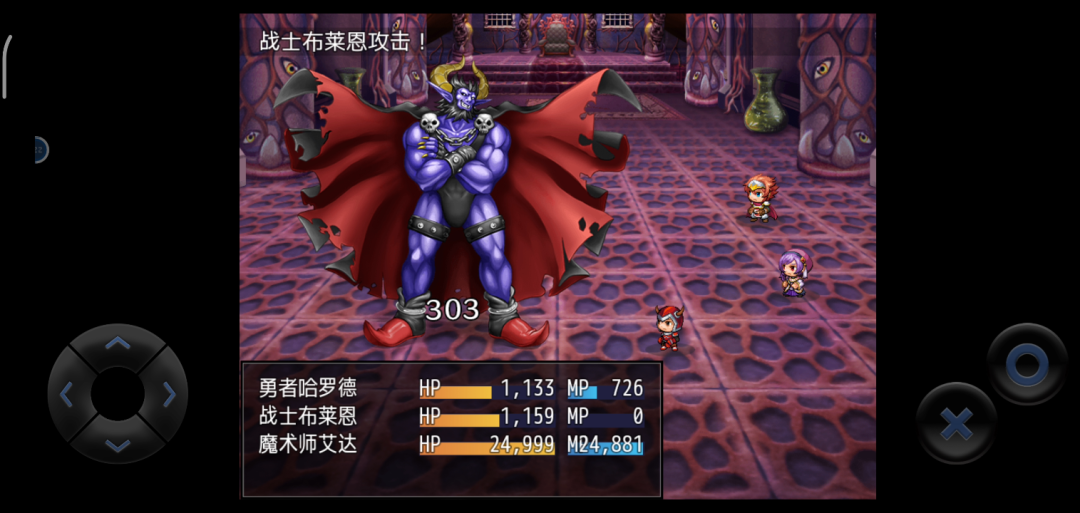 魔王果然是魔王,吃了魔术师艾达,AKA全游戏最强战力一记6000+伤害的“星光”之后还没死,又吃了勇者一记5000+伤害的“超用力砍”和战士布莱恩“高达”300点伤害的一记普攻之后,才一命呜呼。