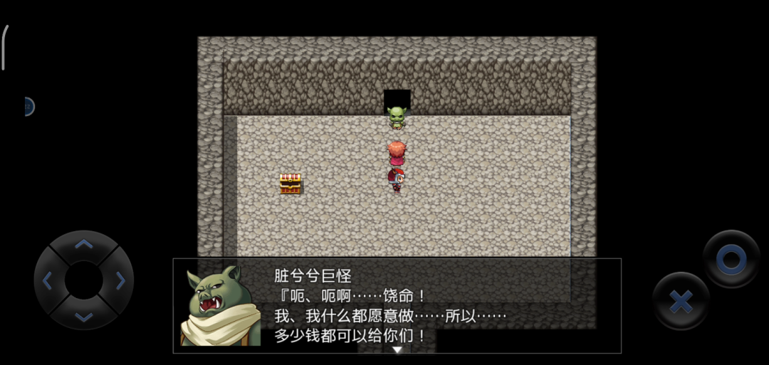 在打完史莱姆+蝙蝠这个RPG游戏究极刻板印象组合之后,我们顺利升到了2级。紧接着我们就会遇到这个看起来挺强的“脏兮兮巨怪”。
