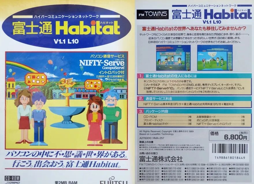 针对富士通FM Towns电脑平台推出的《栖息地》版本,通信费每分钟20日元(不含电话费)
