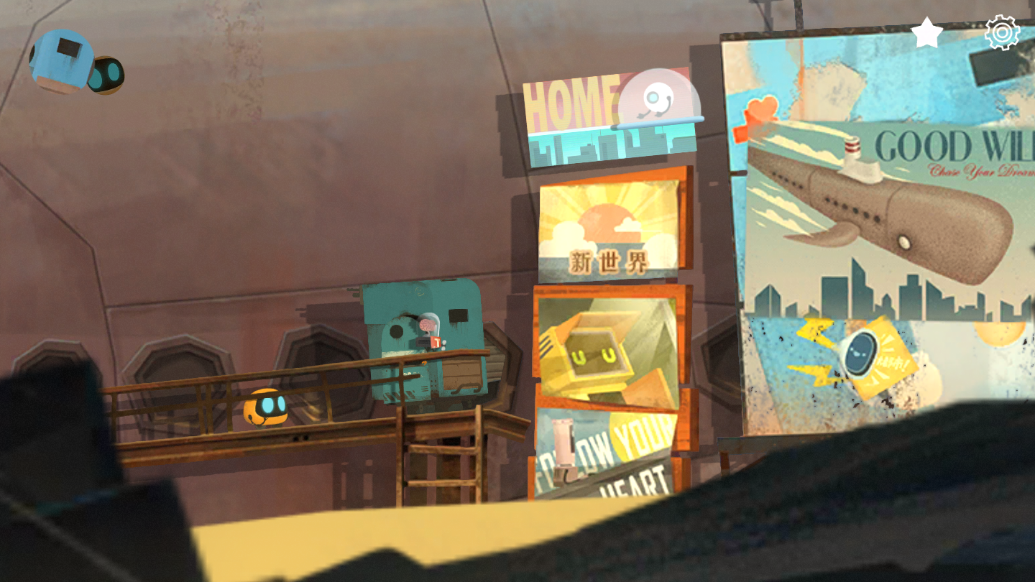 艾彼也是一个机器人,在它的故事里,它也和自己的机器人朋友在末日后的世界中不断前行,看到很多不同的风景,有很多不同的经历,并且也同样没有一个结局。区别在于,“三个机器人”的旅行并没有什么明确的目的,而艾彼和它的朋友们却有坚定的目标,只不过,《艾彼》这款游戏在2017年11月正式上线时就是一个半成品,后来也始终没有推出续章。