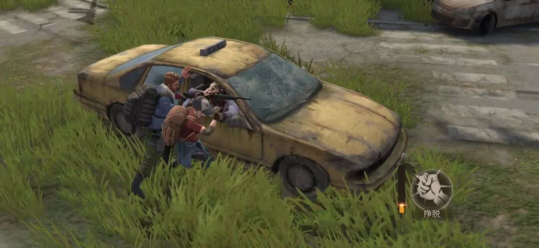 为了强化探索的代入感,游戏安排了不少QTE操作。比如两人去查看一辆废弃车子,里面的丧尸突然袭击他们时,就需要玩家点击屏幕模拟和丧尸拉扯。