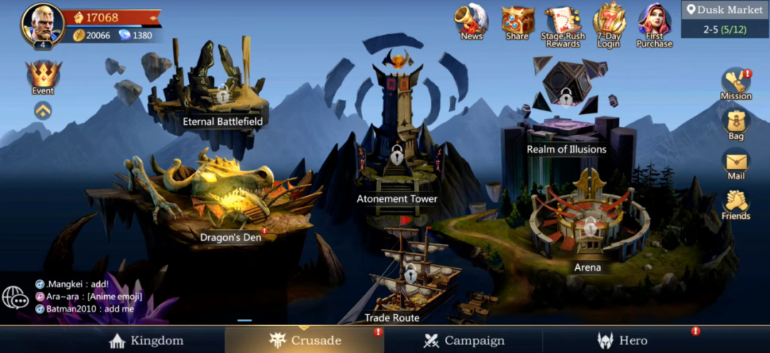玩法层面,《Empire of Night》同样以ROK-like为底,前期则以RPG游戏的地图探索玩法进行包装。