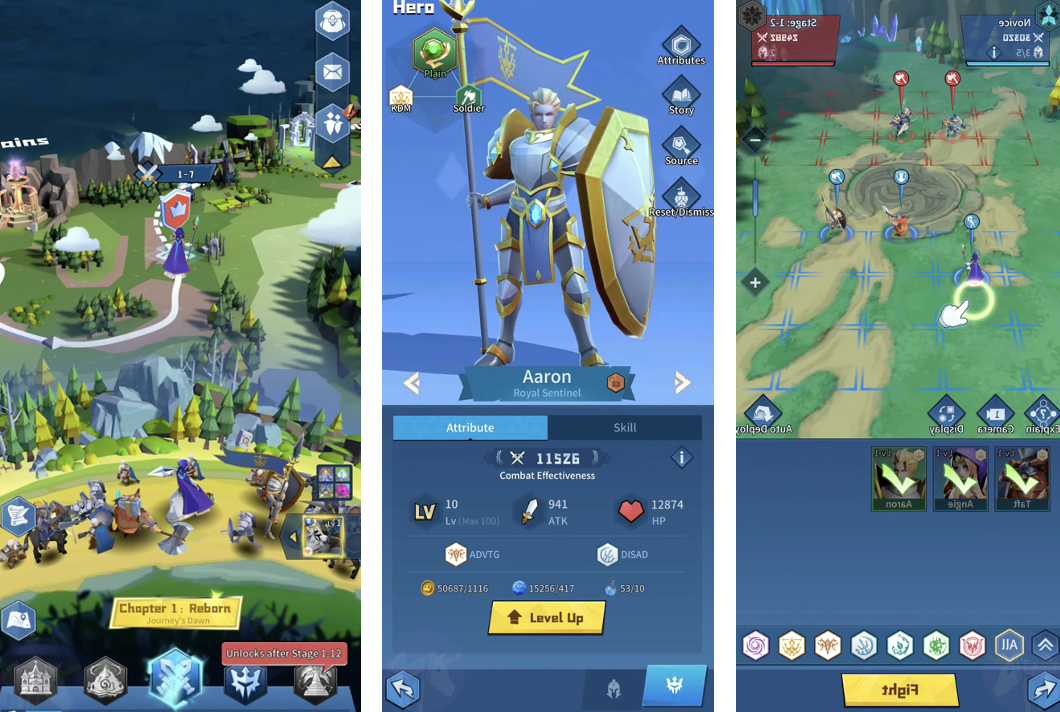 依旧是一款竖版放置卡牌,题材是喜闻乐见的西方奇幻。比较特别的是游戏采用了Low Poly的表现手法,整体观感较为清新明亮。