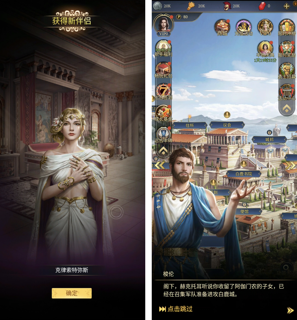 这同样是一款打算男女通吃的产品。和前面两款不同的是,《Godswar Mobile》没有选用中世纪,而是以古希腊神话作为自己的舞台背景。考虑到古希腊神话在西方的影响力,以及这条赛道上较少的竞品,加上游戏自身不俗的美术品质,或许还真有望突围。