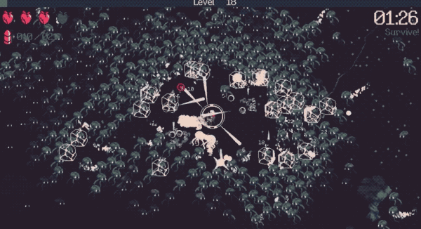 在一波波来袭的怪物里,不断选择buff和技能,打造流派,撑过20分钟就赢。