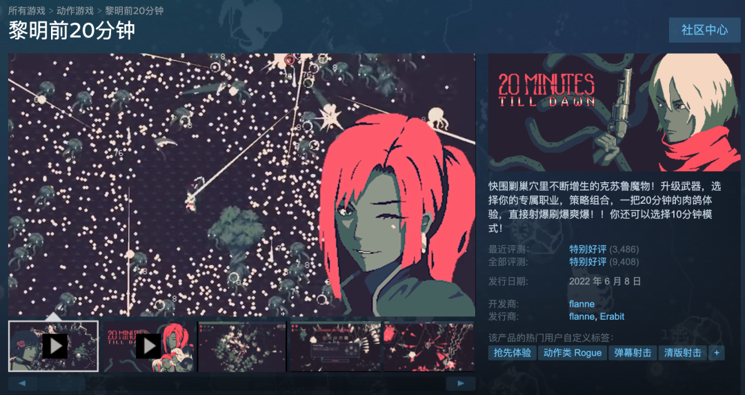 Steam上特别好评的肉鸽射击游戏 《黎明前20分钟》,手游版在 TapTap 开启不限量试玩啦。