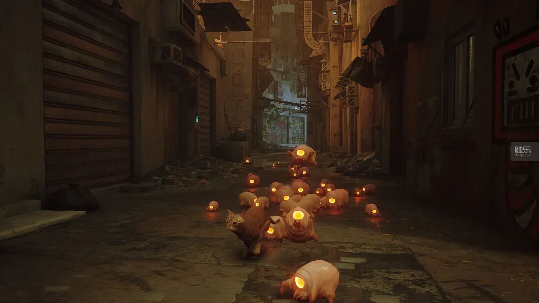 游戏的设计比较常规。大部分关卡都是解谜、追逐、潜行,附带一点收集,并且难度不高。因此,也许有人会觉得《Stray》的游戏性不算强。不过,一只猫嘛,你还指望它能做什么呢?在我看来,在赛博城市中敏捷地穿梭、拯救机器人朋友的小橘,已经是一只非常勇敢和乖巧的猫咪了!