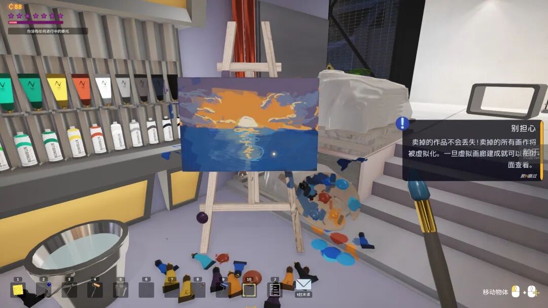 在电子绘画技术日益成熟的现在,《艺术家模拟器》(SuchArt: Genius Artist Simulator)尝试在虚拟空间中为你找回一部分传统绘画的体验。相比起真正的传统绘画,显而易见,游戏对作画的便利性有诸多改良之处——最起码的,你随手就可以买下自己需要的颜料,只要你有足够多的钱,画材和工具都会源源不断地直接送进你的工作室。