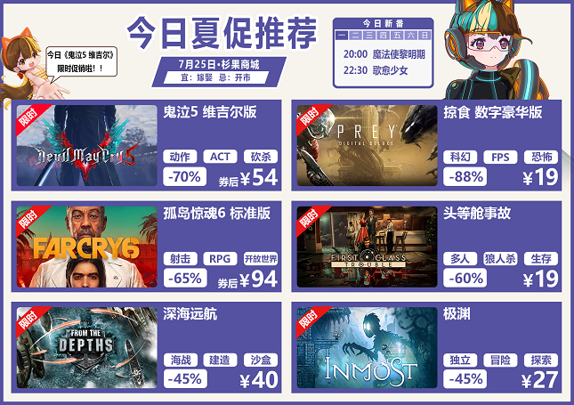 杉果“720 暑促”现已开启,不仅海量游戏立享平史低、新史低折扣,更有神秘大作免费送。除此之外,超值福袋、神秘捆绑包、积分抽奖等等超值福利也将悉数回归,是不是已经怦然心动了?那还等什么,快来杉果 720 暑促看看吧!