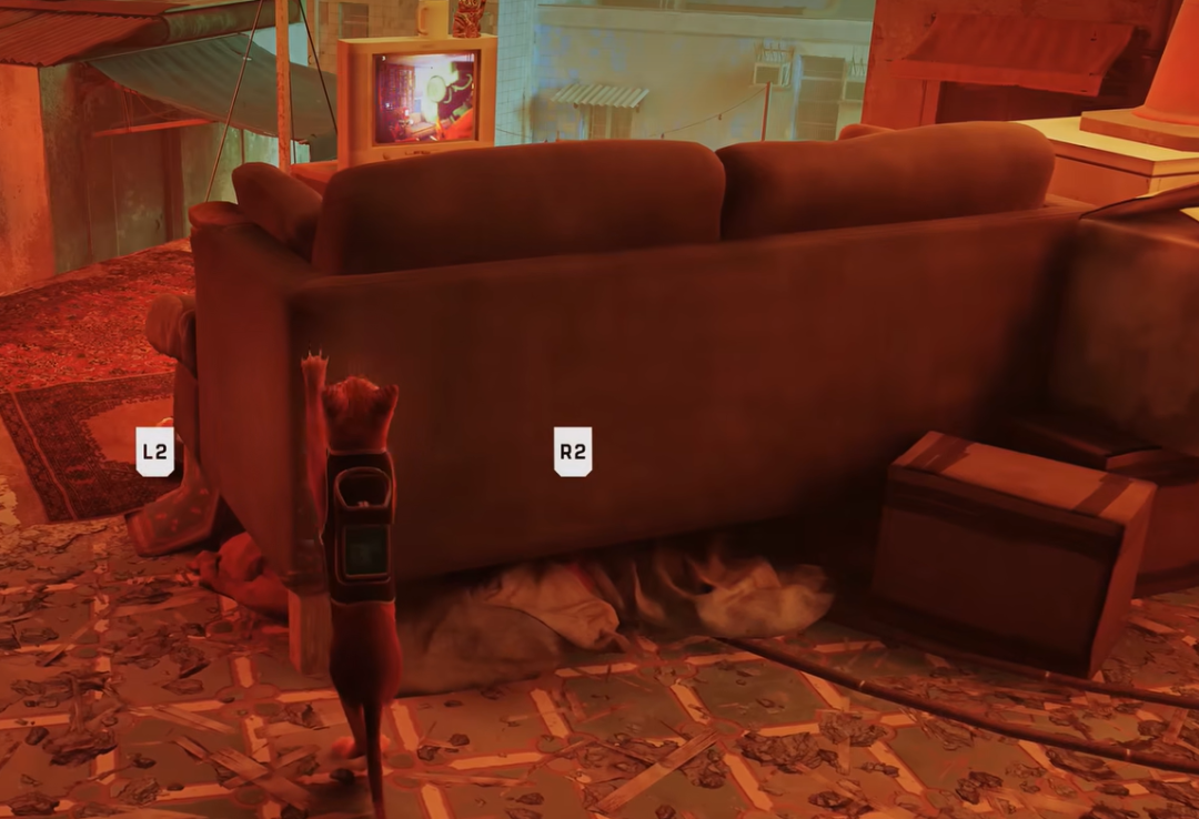 在优秀的场景设计的加成下,《迷失》的猫咪元素也得到了更好的表现。可以说,游戏之所以能获得玩家们的一致好评和追捧,作为主角的橘猫是当之无愧的头号功臣。制作组似乎一开始就对这样的情况有所预料,在还原猫咪的行为细节等方面下了功夫。