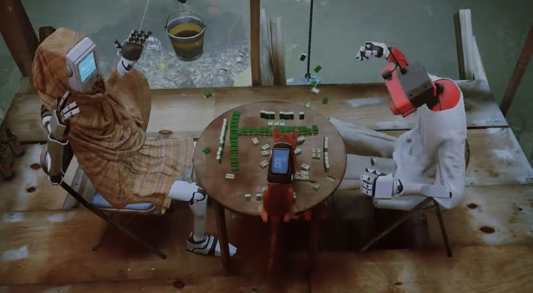 但是,这样的场景却并不像许多玩家期待的那样生机勃勃。游戏里来来往往的机器人NPC看似有自己的意识,但它们只会重复几句简单的对话,或者沿着设计好的固定路线来回走动,很少会有机器人对玩家操控的小猫做出反应,哪怕猫咪主动捣乱搞怪,顶多只会出现短暂的动画演出,NPC们很快又会回到呆板的机器人模式。