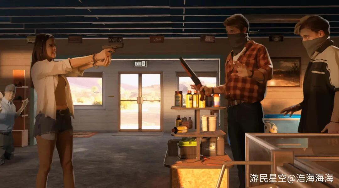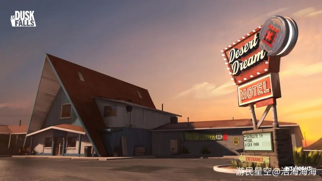 《日落黄昏时》的背景设置在1998年的美国中西部小镇双岩镇上,并和与之相临的66号公路有着分不开的关系。因此游戏开始玩家就能感受到一种西部公路片的感觉,但玩到最后会发现这其实是一款犯罪题材的群像剧游戏。