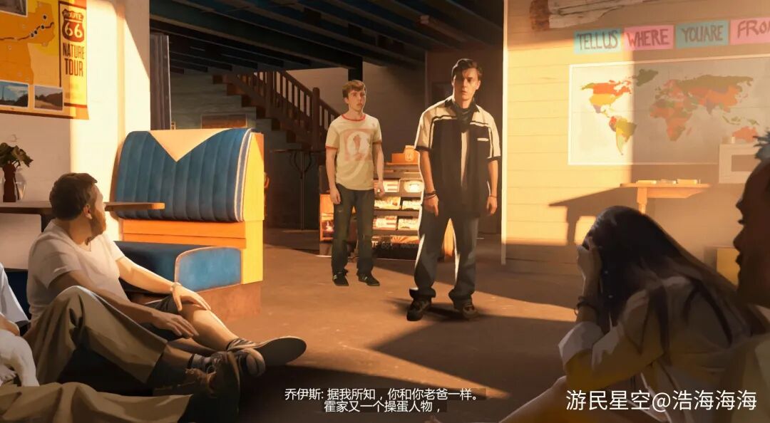 但在《日落黄昏时》里,虽然同为多视角叙事,但彼此的信息几乎完全不对等,这种信息差是互相补足而不是冲突的存在。有时候你能通过一个人的视角了解到故事的前因后果,在这个人的视角中做出的选择,在另一个人的视角中面对之前操控的人时,系统就会根据玩家之前为那个人进行选择而形成的行为准则下,为他做出相应的选择。