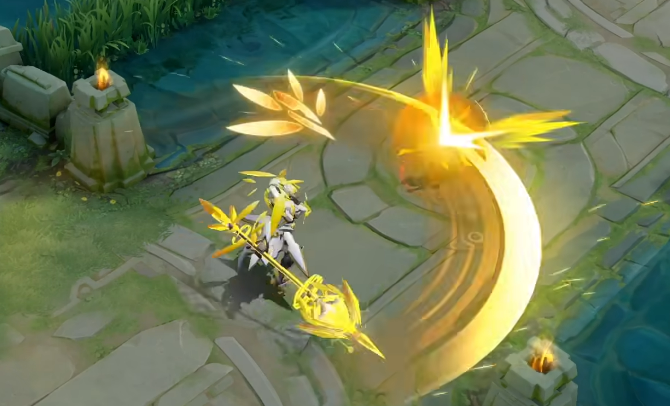 金黄色的特效倒是挺好看的,不过不知道大家注意到了没有,普攻时候的方天画戟,造型是不是神似金蝉的九环锡杖…