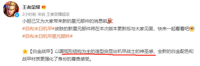有点出乎怪客的意外,昨天晚上最终官宣的新皮肤并非之前预测的虞姬的星传说或传说皮肤,而是 吕布末日机甲的星元皮肤。