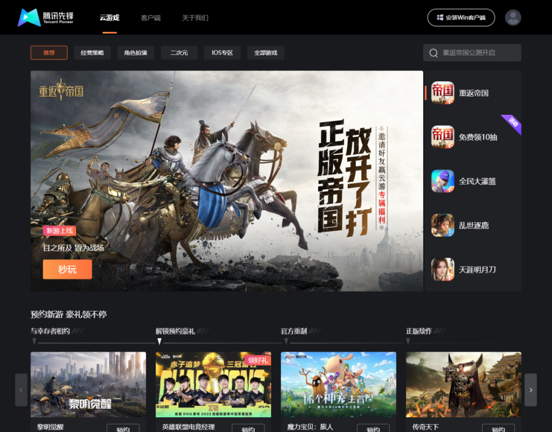 不止如此,在内容方面,腾讯先锋也是国内为数不多同时支持移动端、大屏TV、PC、Mac等多端的云游戏平台,并且平台还拥有丰富的游戏内容库以及庞大的用户基础。在产品层面,腾讯先锋已经全量接入了腾讯旗下上百款热门游戏及新品,包括《王者荣耀》《和平精英》等。今年,腾讯先锋还将上线《天涯明月刀手游》的官方iOS版本云游戏《云·天涯明月刀手游》,这也将让先锋成为国内为数不多跑通iOS生态的云游戏平台,进一步丰富云游戏的内容生态。