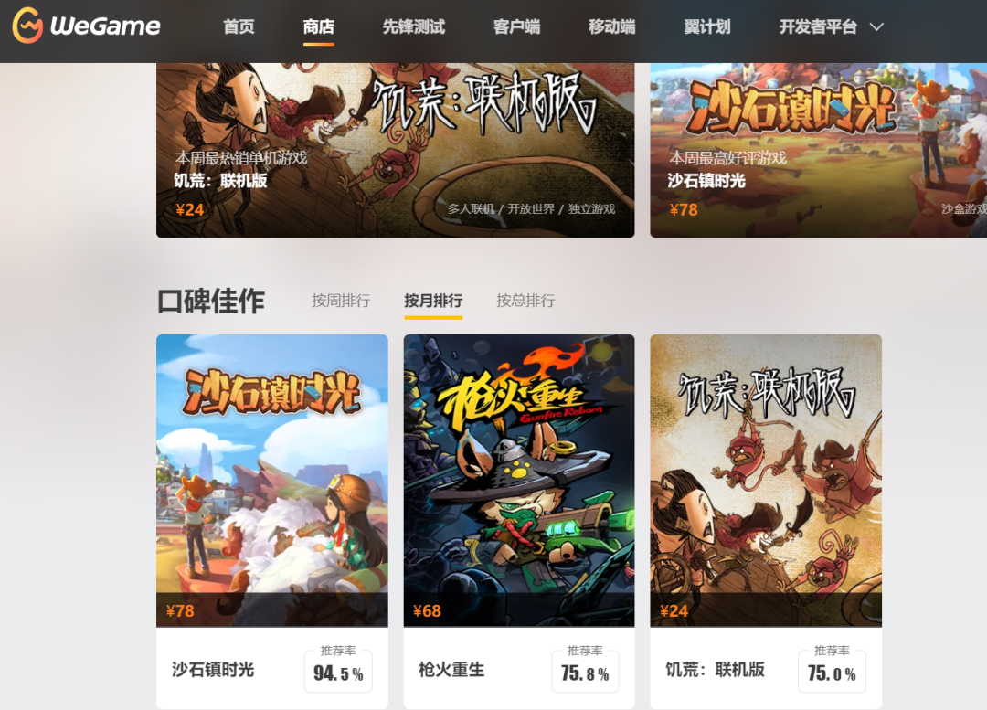 在蒸汽中国之外,国产端游平台并不是没有成功案例,腾讯的WeGame就拥有相当庞大的用户基础,其注册用户超过3亿,月均活跃人数多达7000万。当然,这很大程度上要归功于腾讯旗下的《英雄联盟》《穿越火线》等热门网游,至于其他的线上游戏商店功能,或许只能算WeGame的一个“副业”。但在用户数量的支撑下,WeGame的游戏商城功能还是稳中向好的。